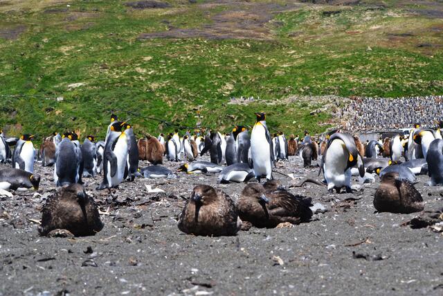 Skuas subantarctiques et manchots - 8433 - Lemonnier Gildas