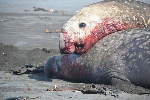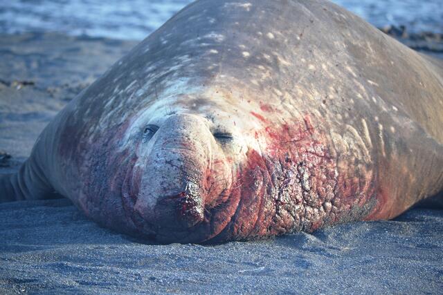 Eléphant de mer mâle ensanglanté suite à un combat - 8170 - Lemonnier Gildas