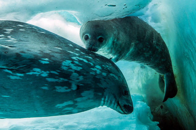 Phoques de Weddell nageant sous la glace - 7361 - Ballesta Laurent