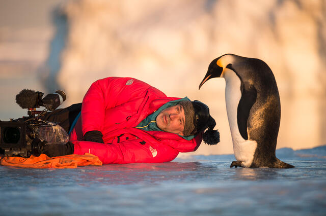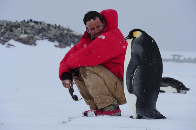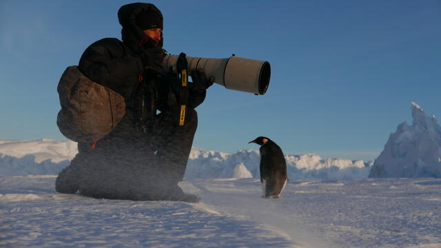 Un manchot empereur accompagne Vincent Munier - 7319 - Luc Jacquet