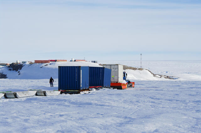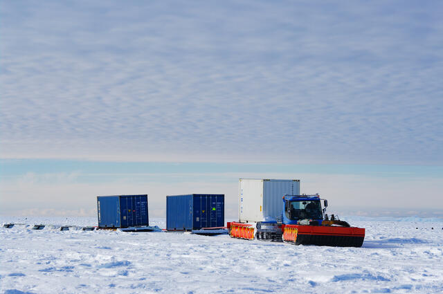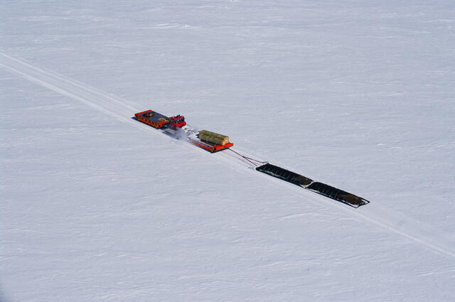 Arrivée du convoi de dameuse à Dumont d'Urville - 2492 - Bretel Patrice