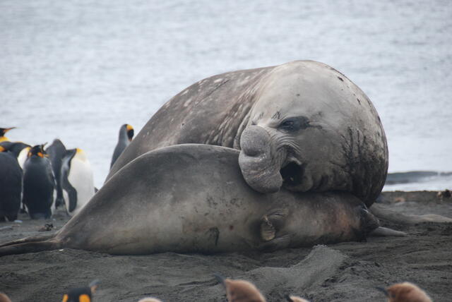 Eléphant de mer austral mâle parmi des manchots royaux - 2061 - Kernaleguen Laëtitia