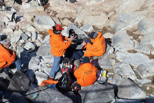 Regroupement de manchots Adélie sur des rochers - 1857 - Marcel Pauline