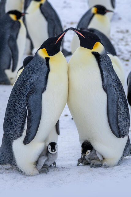 Couple de manchots empereurs et leurs poussins - 1404 - Pernin Nicolas