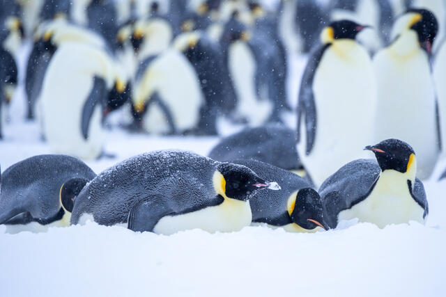 Manchots empereurs couchés dans la neige - 1406 - Pernin Nicolas