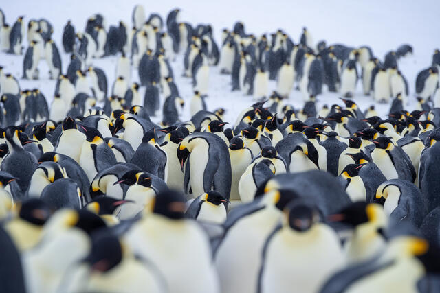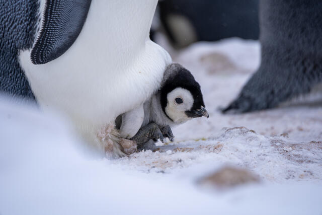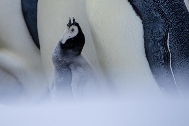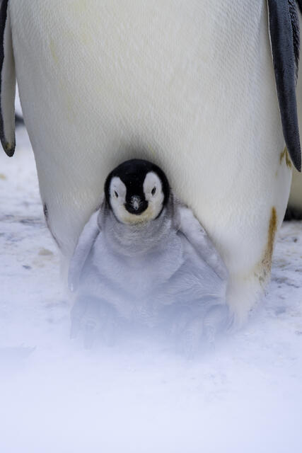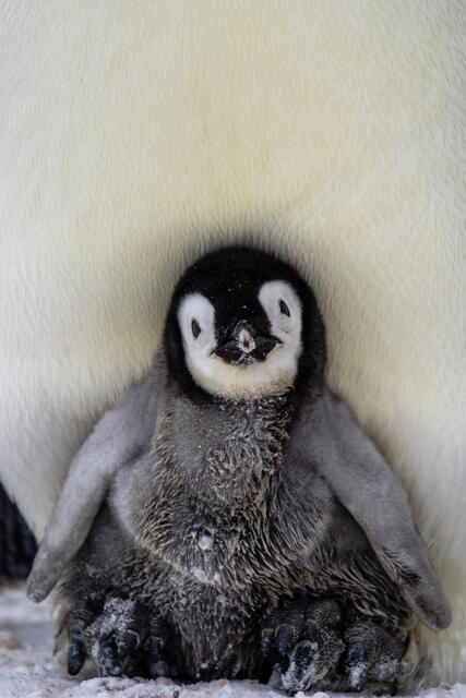 Manchots empereurs et leurs poussins sous la poche ventrale - 1407 - Pernin Nicolas