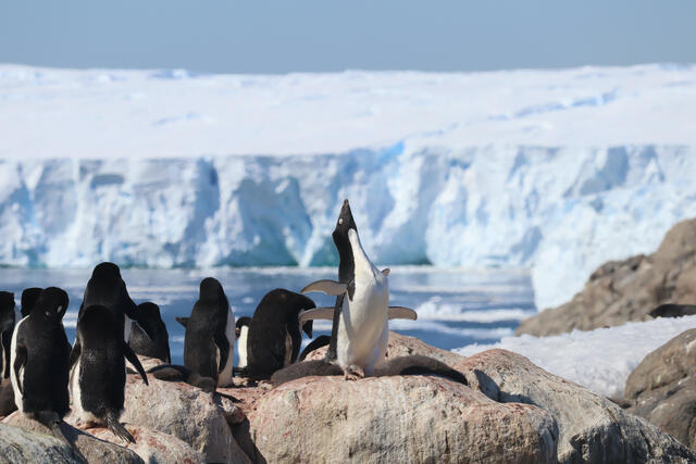 Groupe de manchots Adélie sur un promontoire rocheux - 1231 - Marcel Pauline