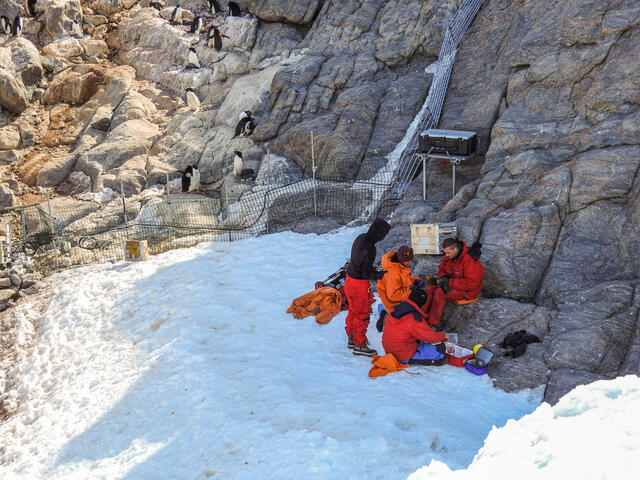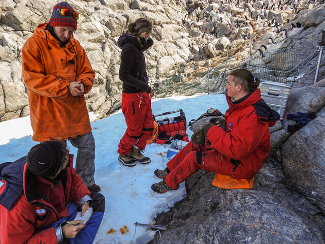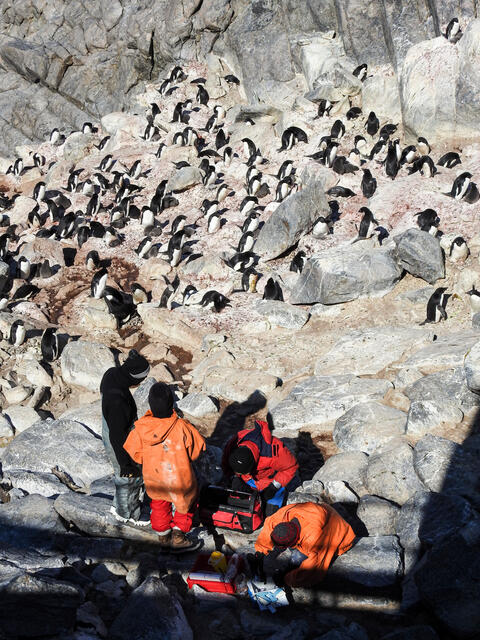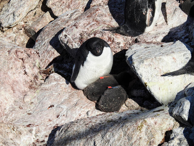 Manchot Adélie et ses poussins étiquetés (Projet ANTAVIA) - 12591 - Bonhomme Lucie