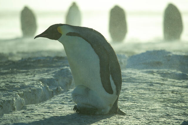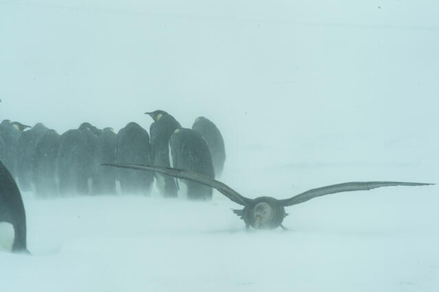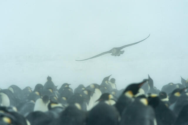 Danger planant au-dessus de manchots empereurs - 11666 - Decourteille Virgil