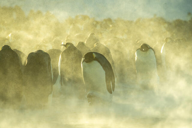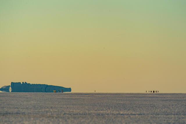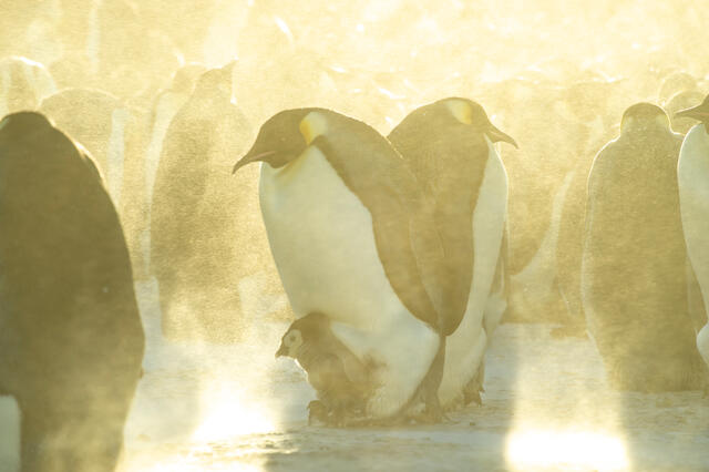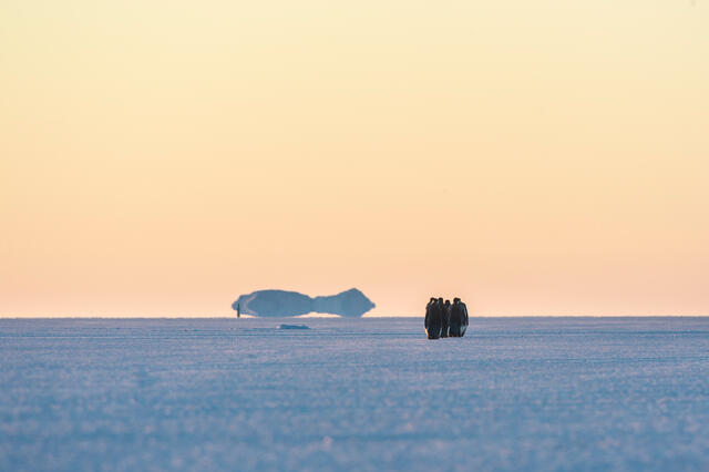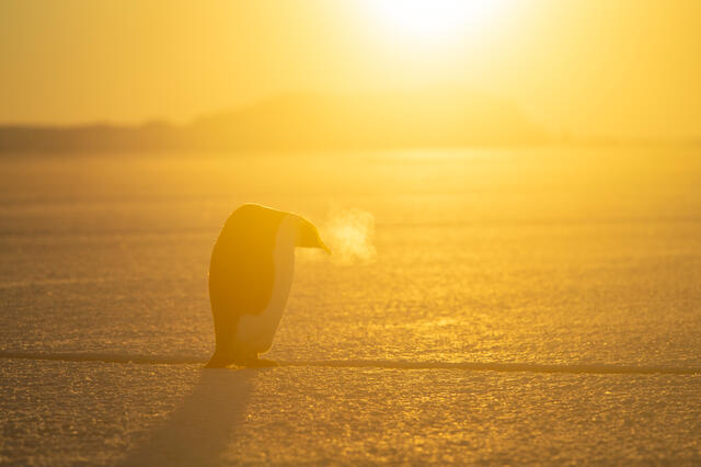 Manchots empereurs au soleil couchant - 11658 - Decourteille Virgil