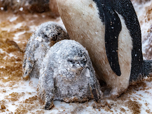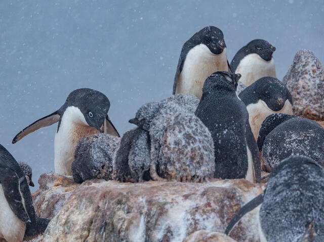 Poussins de manchots Adélie recouverts de neige - 11495 - Cusa Bruno