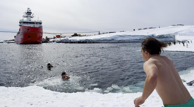 Manchot Adélie près de l'Astrolabe amarré à Dumont d'Urville - 11472 - Cusa Bruno