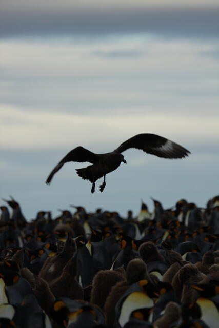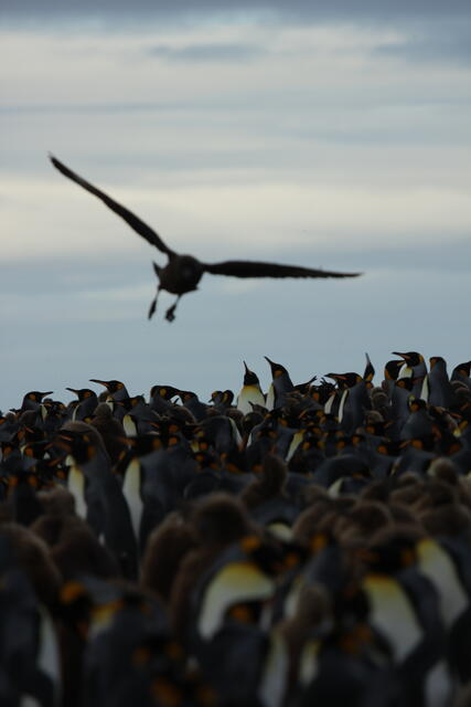 Prédateur survolant une colonie de manchots royaux - 10177 - Vivet Pierre Alain