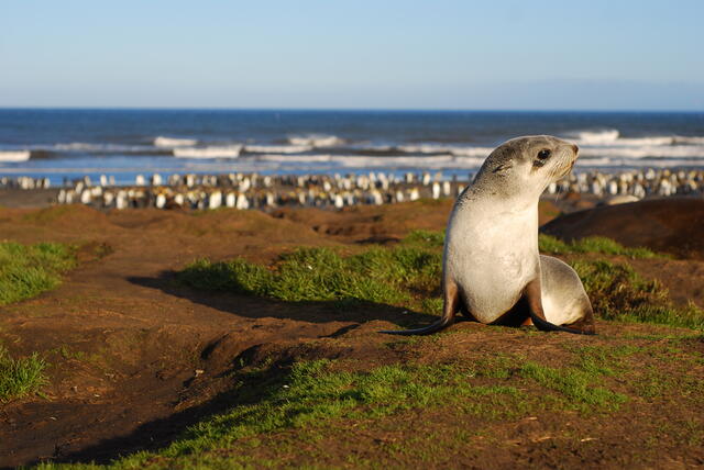 Petite otarie d'Amsterdam devant une manchotière - 10192 - Vergoz Thibaut