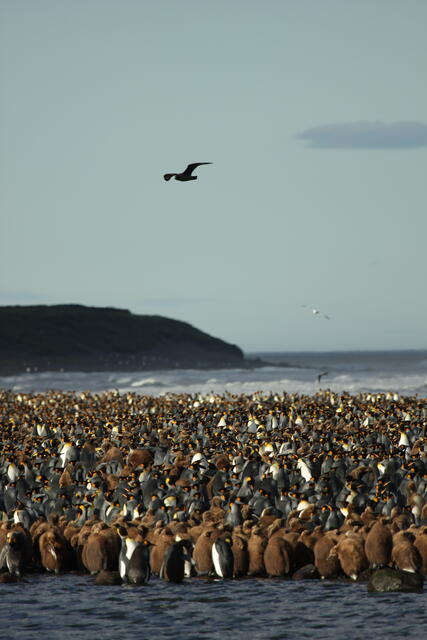 Prédateur survolant une colonie de manchots royaux - 10152 - Vivet Pierre Alain