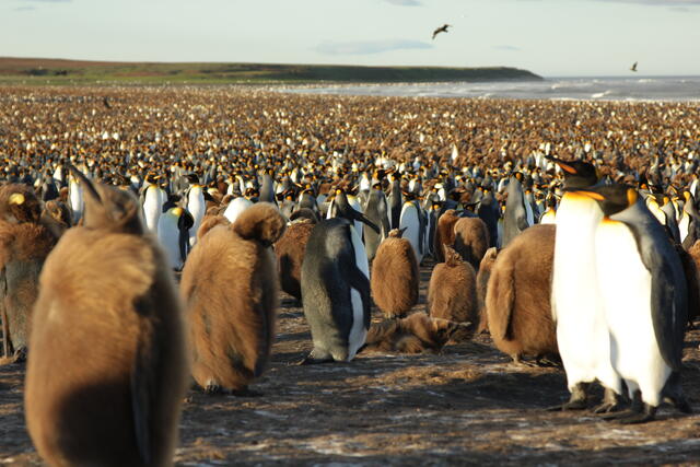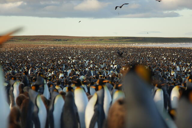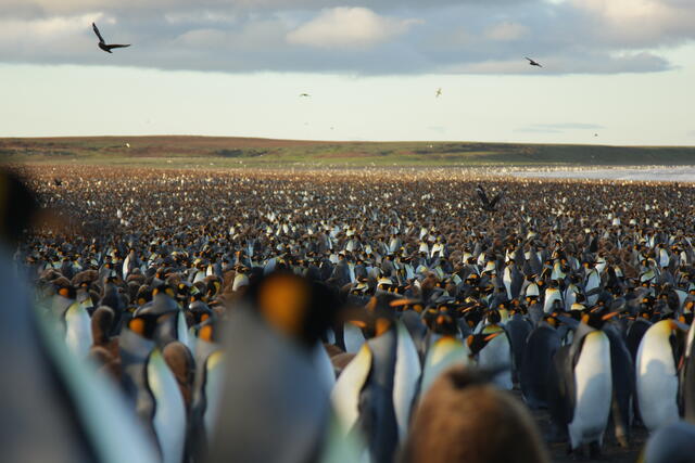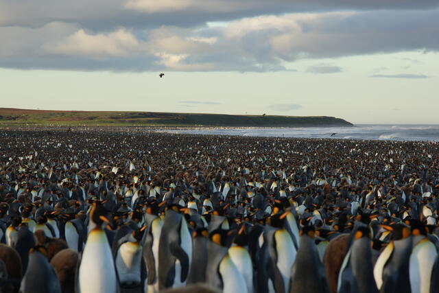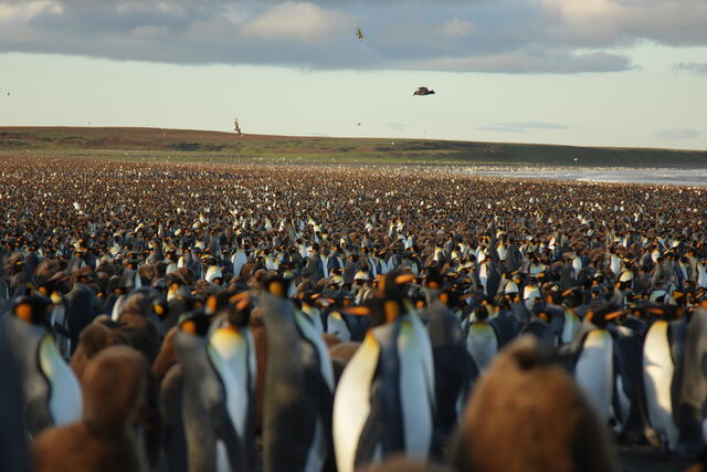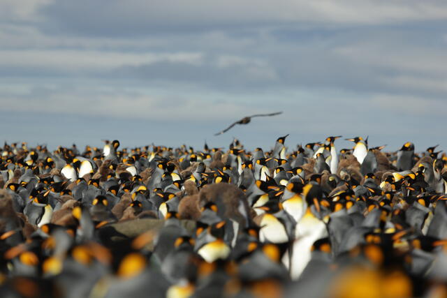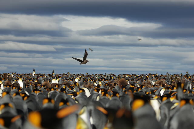 Prédateur survolant une colonie de manchots royaux - 10174 - Vivet Pierre Alain